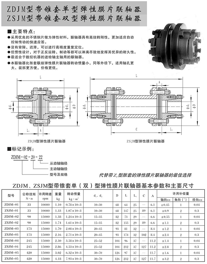 ZDJM型帶錐套單型彈性膜片聯(lián)軸器ZSJM型帶錐套雙型彈性膜片聯(lián)軸器