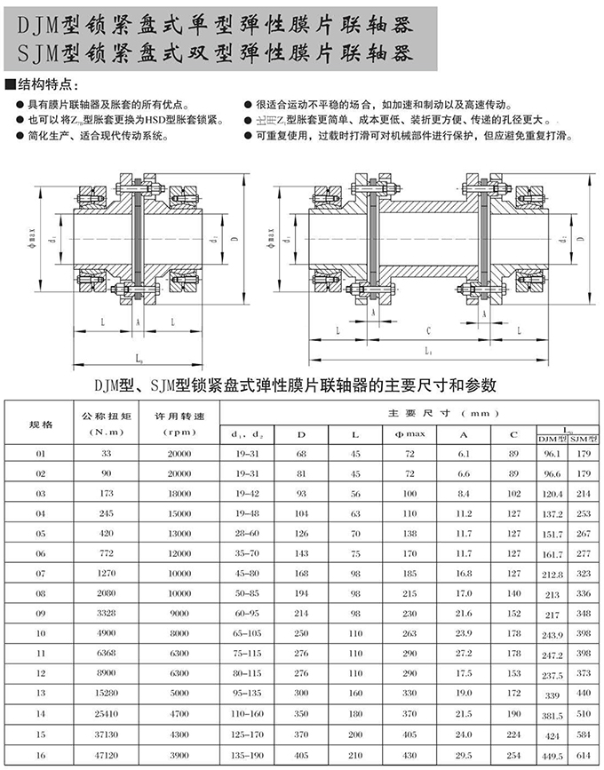 您當(dāng)前的位置:首頁(yè) / 產(chǎn)品展示 / 蛇形聯(lián)軸器系列 / DJM型鎖緊盤(pán)式單型彈性膜片聯(lián)軸器SJM型鎖緊盤(pán)式雙型彈性膜片聯(lián)軸器