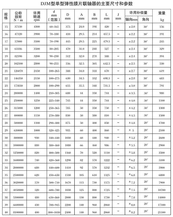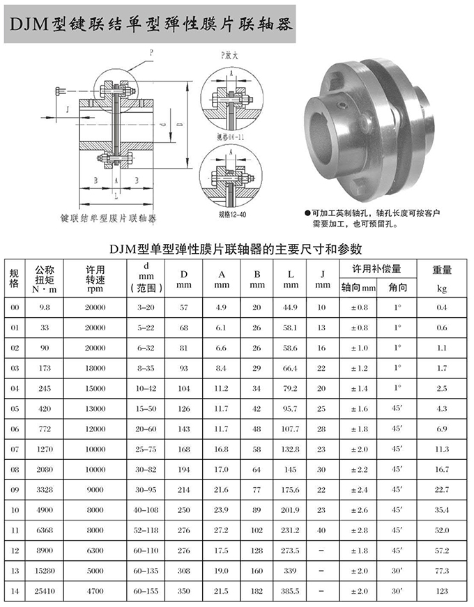 瑞安市寶德隆機械配件有限公司提供DJM型鍵聯(lián)結單型彈性膜片聯(lián)軸器具有拆裝方便,快速安裝等特點,廣泛用于連接/固定輪轂孔和零件的軸,例如齒輪,錐齒輪,鏈輪,葉輪,凸輪,皮帶輪和飛輪等軸的聯(lián)結固定,咨詢電話:18906872378