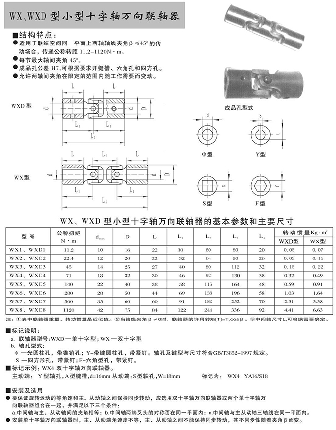 瑞安市寶德隆機(jī)械配件有限公司提供WX、WXD型小型十字軸萬(wàn)向聯(lián)軸器具有拆裝方便,快速安裝等特點(diǎn),廣泛用于連接/固定輪轂孔和零件的軸,例如齒輪,錐齒輪,鏈輪,葉輪,凸輪,皮帶輪和飛輪等軸的聯(lián)結(jié)固定,咨詢電話:18906872378