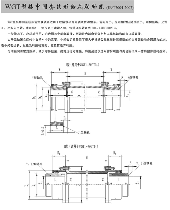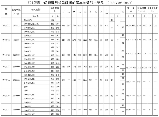 瑞安市寶德隆機械配件有限公司提供WGT型接中間套鼓形齒式聯軸器具有拆裝方便,快速安裝等特點,廣泛用于連接/固定輪轂孔和零件的軸,例如齒輪,錐齒輪,鏈輪,葉輪,凸輪,皮帶輪和飛輪等軸的聯結固定,咨詢電話:18906872378